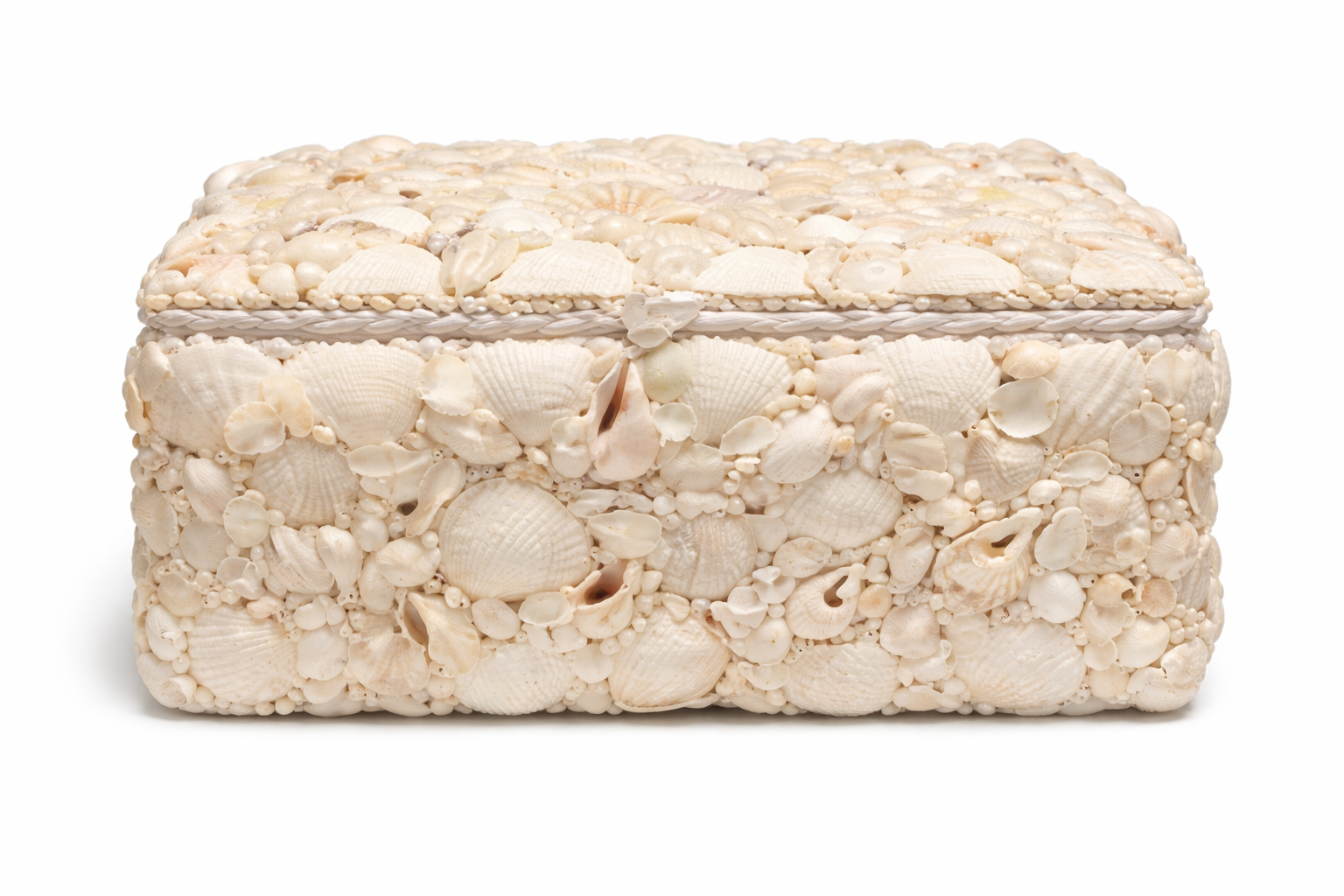 Handcrafted shell box with generous storage space, perfect for organizing jewelry, keepsakes, or decorative display. Natural shell construction adds coastal charm to any room. Ideal for adding texture and warmth to shelves, dressers, or entryway tables.
